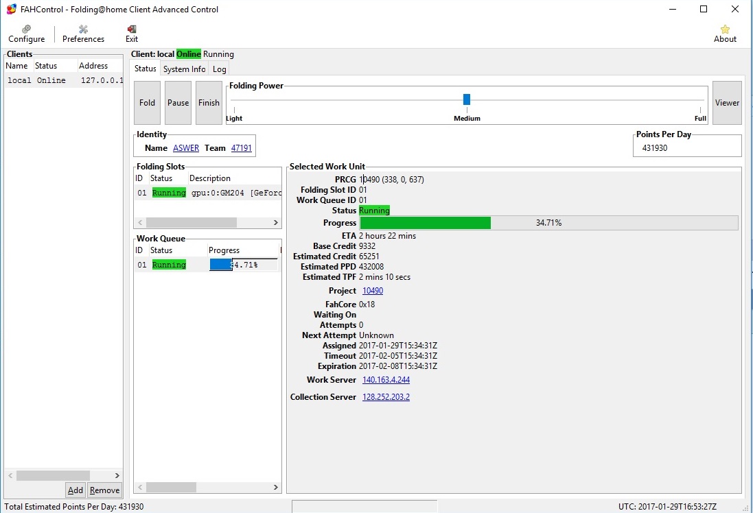 Для видеокарт AMD рекомендуется использовать драйвер Omega (14.12) в Folding@Home и 16.7.3 WHQL в POEM@Home; Для видеокарт NVIDIA на чипах GK106, GK107, GF1xx и старее рекомендуется использовать драйвер 358.87 WHQL; Для видеокарт NVIDIA на чипах GK104 рекомендуется использовать драйвер 358.87 WHQL; Для видеокарт NVIDIA на чипах GK110 рекомендуется использовать драйвер 358.87 WHQL; Для видеокарт NVIDIA на чипах GM1xx и GM2xx рекомендуется использовать драйвер 372.54 WHQL. Для видеокарт NVIDIA на чипах GP104\GP102(Pascal) рекомендуется использовать драйвер 385.69 WHQL.