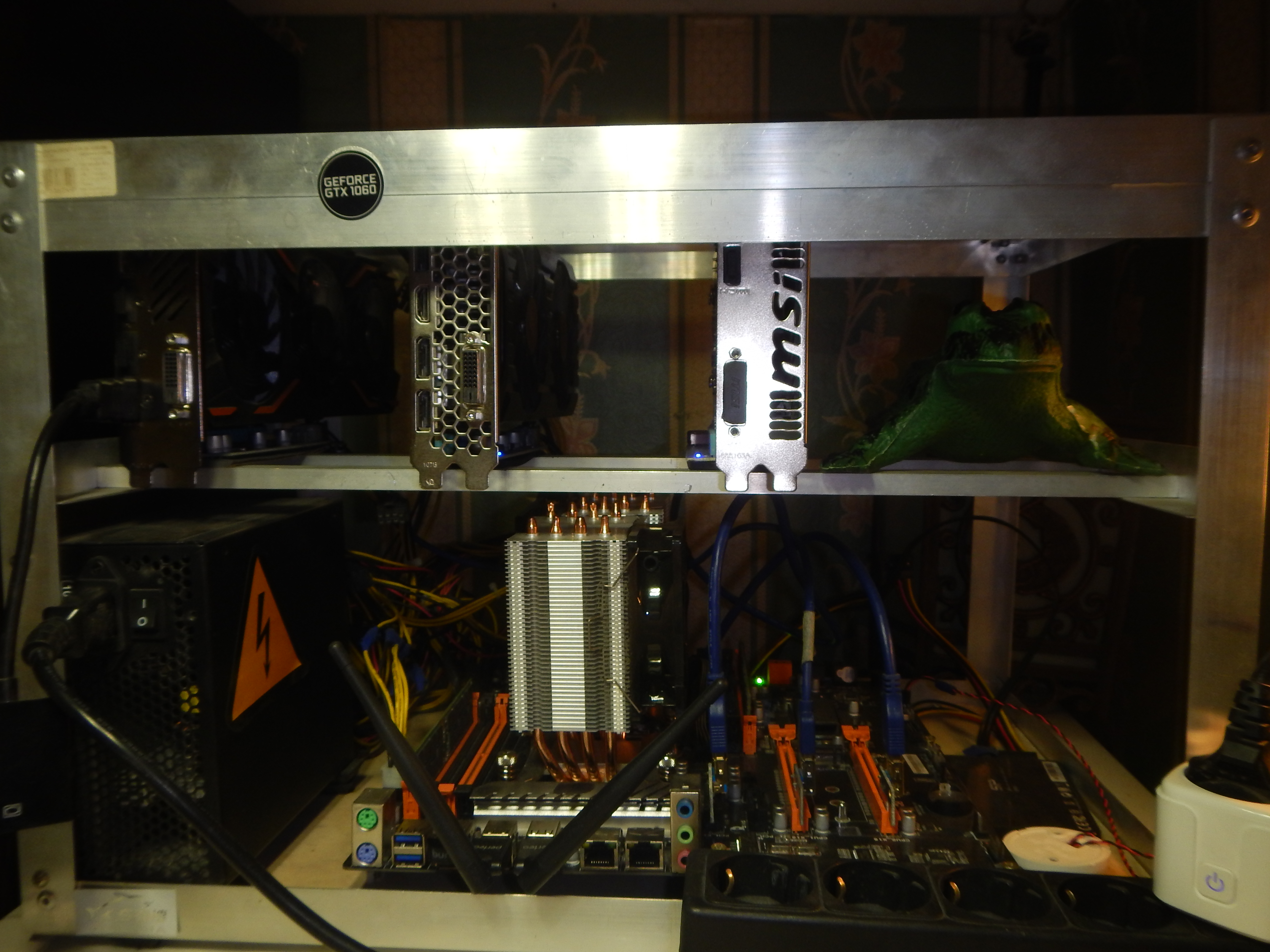 То что жрут много это основная проблема. Когда во вторую систему добавил GTX 1080 то пришлось выключить первую с Tesla C 2070, ибо вместе они кушали в районе 650 Вт. Под определением "открытый стенд" имелось ввиду что то вроде майнинг фермы или когда все компоненты системы просто лежат на столе и лучше руками не трогать что бы ничего не замкнуло ) А вот с водянкой ни разу не сталкивался....