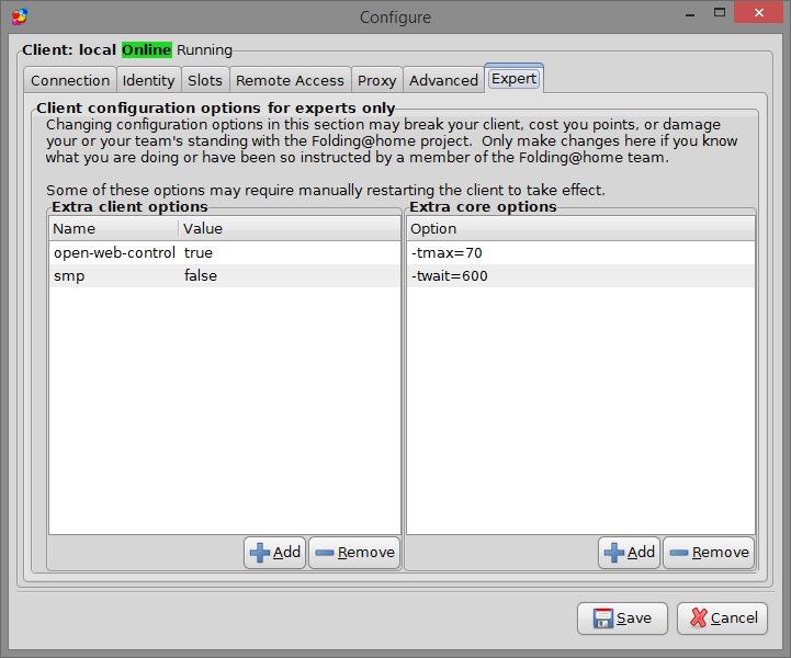 Hi! Так как всё чаще слышу и вижу трудности у камрадов с "враждебным" интерфейсом 7-ого клиента, решил подсобить в решении этой проблемы - вот первый вариант описания настройки 7-ого клиента Folding@home с картинками и на русском! Предлагаю добавить в шапку и допиливать по мере возможности и необходимости. Первая проба настройки и установки прошла успешно. Sir_N_Drew , что думаешь, как куратор ?