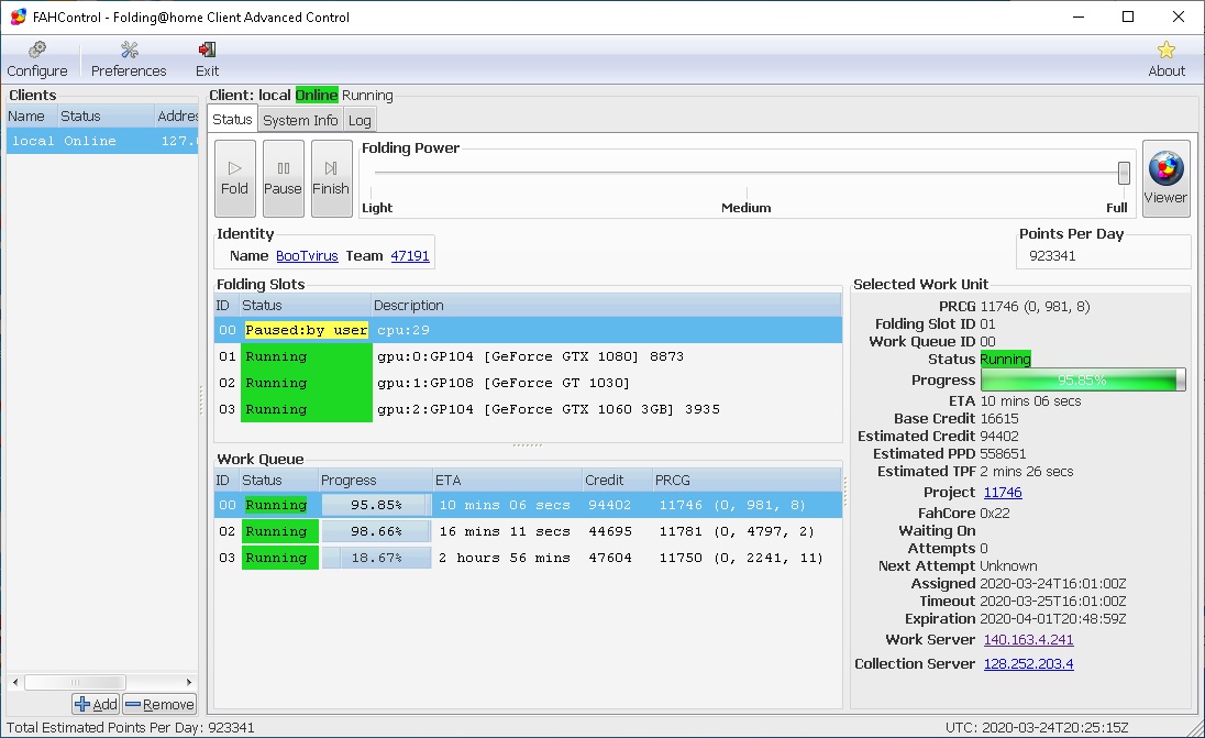 3) И также можно переключиться (или подключить параллельно) на проекты, ведущие исследования в области медицины и биологии. Это проекты TN-Grid ( https://gene.disi.unitn.it/test/ ) и World Community Grid (они используют ресурсы центрального процессора) и проект GPUGRID, который использует ресурсы видеокарт NVidia. Сейчас, в данный момент новым пользователям можно поддержать именно 3 этих медико-биологических проекта, поскольку два других Folding@Home и Rosetta@Home сейчас и так сильно перегружены (в связи с поиском лекарства от коронавируса в эти проекты и так пришло сейчас много участников).