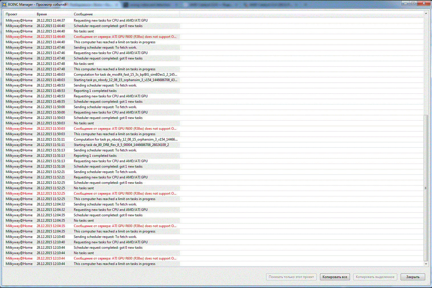 Очень странно ведут себя Боинк клиенты. Сначала портейбл клиенты отказались скачивать новые и даже отправлять уже посчитанные задания в WCG. Затем на одной из машинок у меня нормальный клиент, считавший WCG, провалял дурака 10 дней, т.к. перестал получать новые задания. Я был дико зол, т.к. 10 дней комп вхолостую молотил. Запустил на нем розетту, через пару дней задания перестали поступать. Версия клиента старая, 7.0.52. сначала думал, что это временный сбой, но сейчас была дожевана последняя жаба и новых больше нет. Уже вчера был спад по очкам на этой машинке.