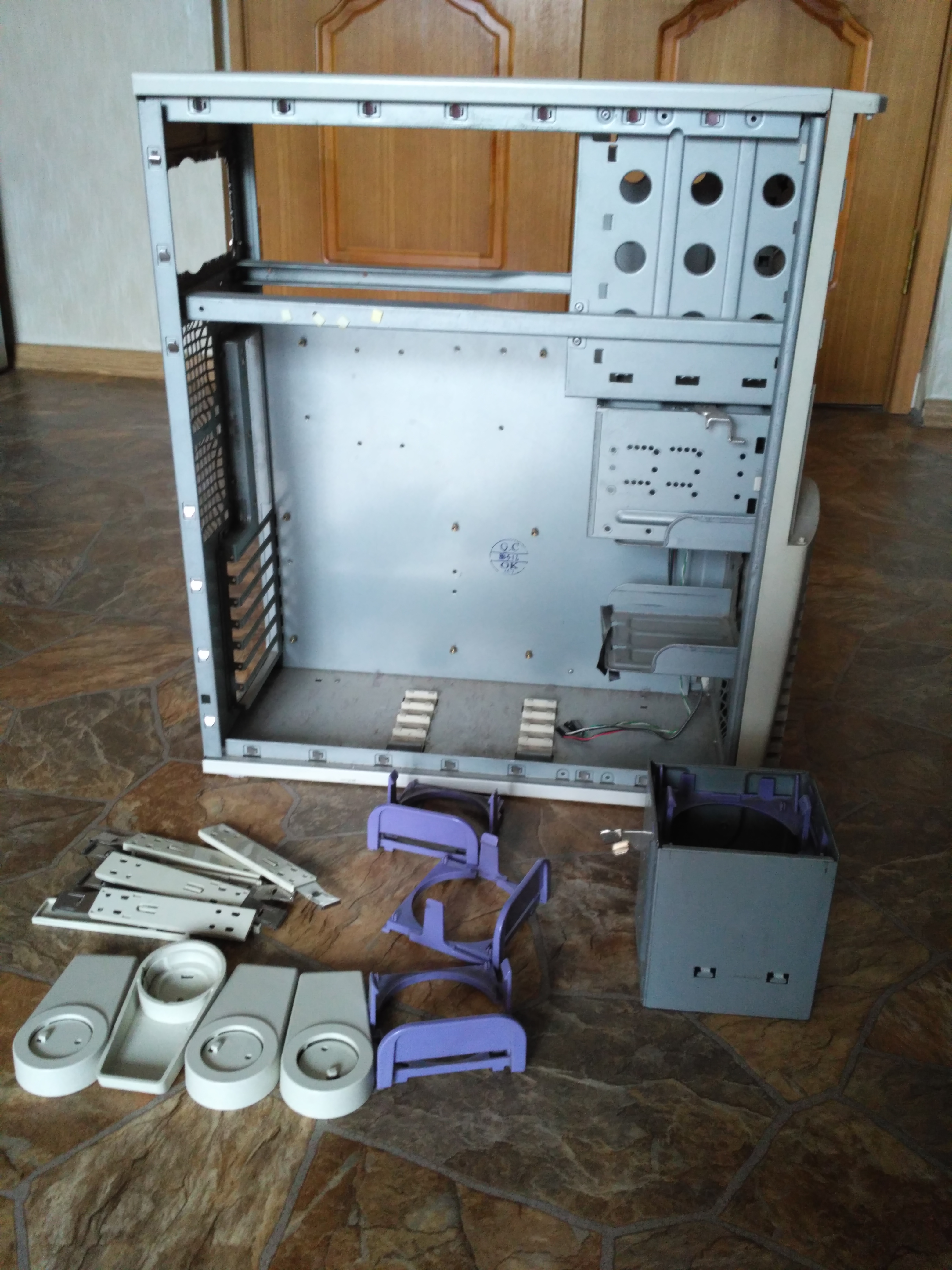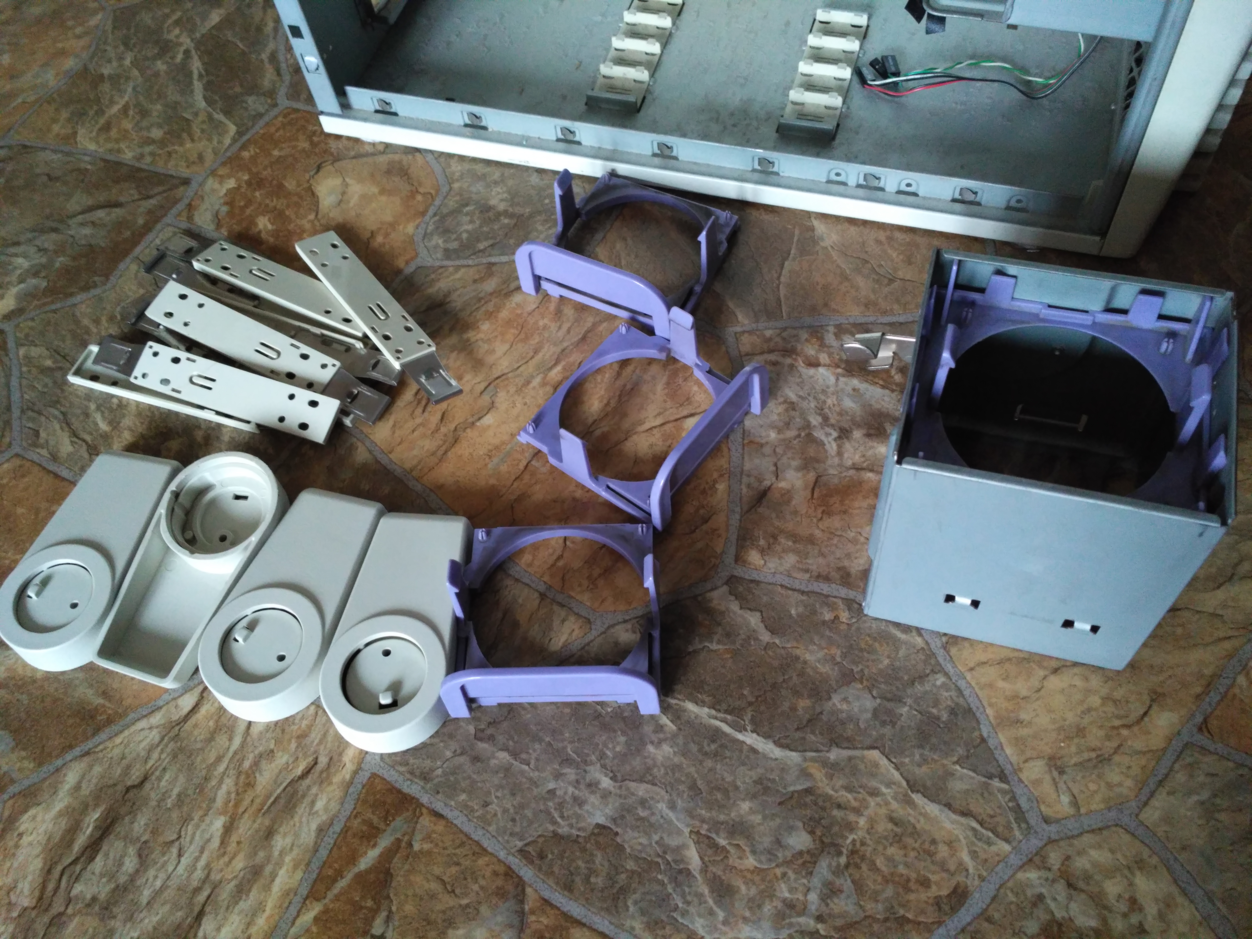 Привет. Есть старенький корпус. Помнится, кто-то здесь искал детали от него, типа направляющих для вентиляторов. Беглое гугление подсказало, что модель корпуса примерно Chieftec DX-01WD. В комплекте только то, что на фото: направляшки для вентилей, для установки 5.25 девайсов, две корзины под 3.5 диски, ноги. Нет боковых стенок, кнопки "ресет", заглушек под 5.25 и т.п. Отдам за самовывоз (мск, юг) и пару шоколадок Риттерспорт. Связь через личку. ЗЫ первый раз юзаю вложения фото, загруженных на сам форум. Если что не так, сильно не пинайте.
