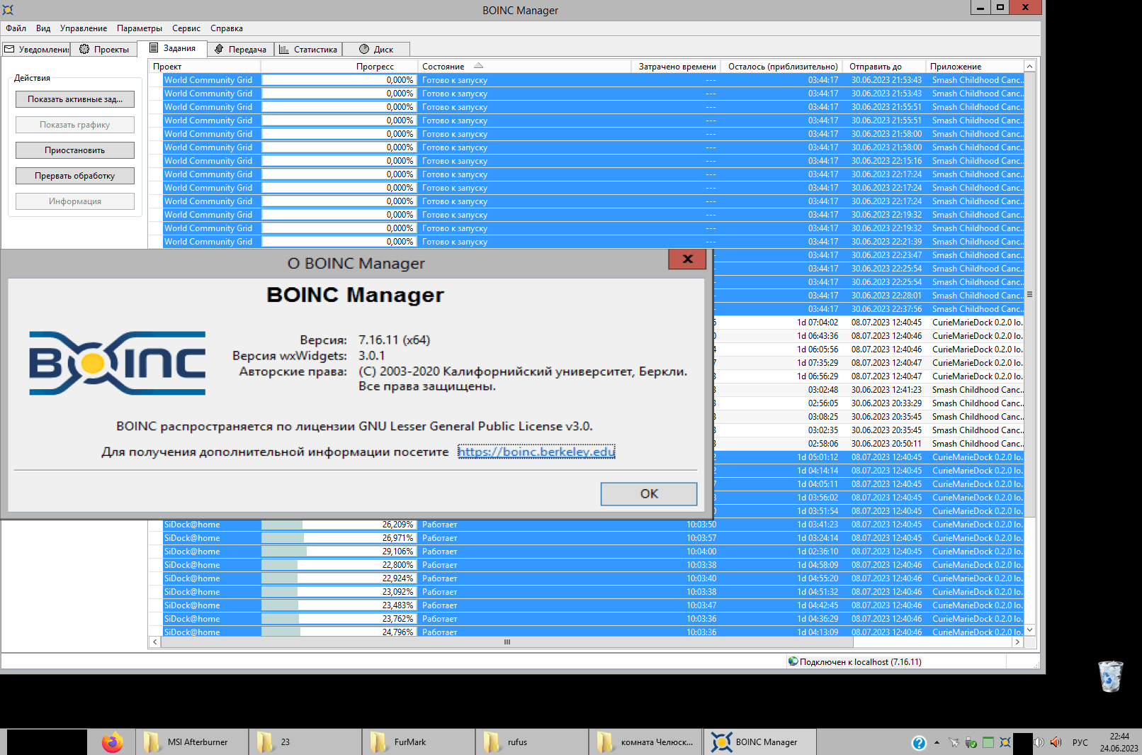 А вот вы замечали, что в BOINC есть такая вещь, что бывает, что задания продолжают считаться после деадлайна.