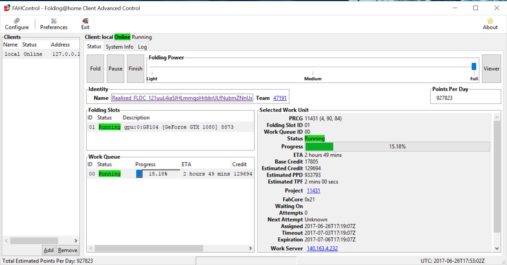 ну а что вы хотите на заданиях 10496 ! - для 1080 PPD 600k вполне реальный - на 1080ти - 900к . Потому и душим по возможности.