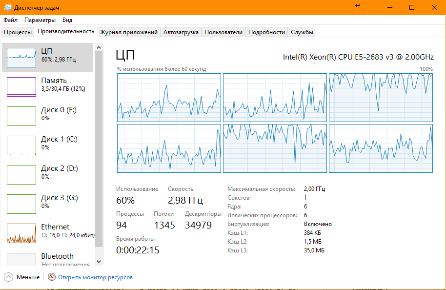 В целях понижения температуры и уменьшения энергопотреблядства отключил 8 ядер и Гипер Трейдинг на своем камне. Что я увидел. Увидел я, что Кранч кушает 49-75% загрузки камня при двух 1080Ти. Кто тут говорил про ядро на видик? Причем кушает сразу все. Овербуст взлетает до 3Ггц на ядро, что возможно при загрузке ядра с моим "разгоном".