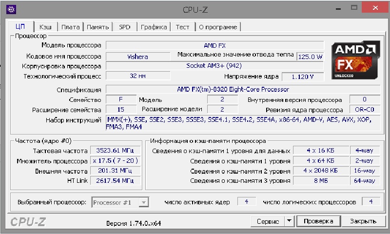 ДВС всем! Поставил новый процессор... FX(tm)-8320, ( о сути вопроса многие уже догадались? ) Таки да - про ядра. AMD FX(tm)-8320 GB GA-990XA-UD3 AM3+ rev1 Geforce GTX 760 2048Mb Cooler Master Silent Pro M600 это то железо, в котором я уверен, что оно должно работать в связке. А вот память - KVR1333D3N9K2/8G, её в списке поддерживаемых процессором нет. В диспетчере - AMD FX(tm)-8320 eight core processor, 4 ядра, 4 логических процессора. Про MSconfig и галочку читал, пробовал. И через биос (да обновил, правда бетой,cmos сбрасывал) включить пробовал. Может ли из-за не поддерживаемой "памяти" 4 ядра "затеряться"? А-то я начинаю думать, что меня с камнем напарили о.с.Windows 8.1