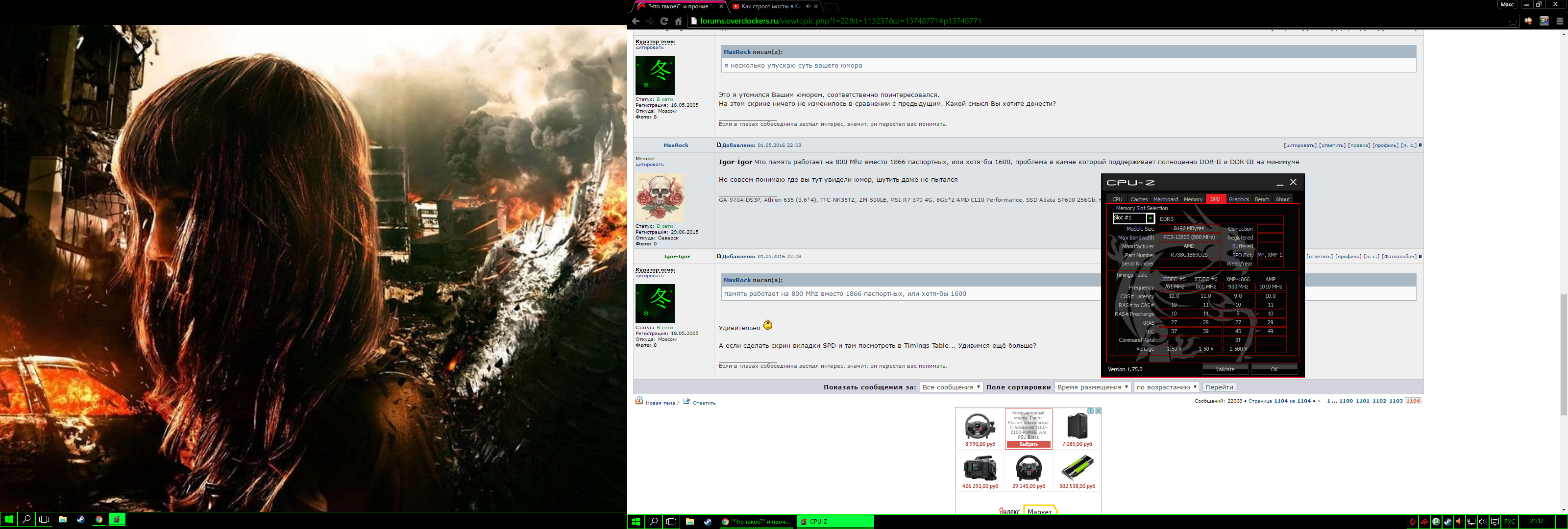 Igor-Igor Что память работает на 800 Mhz вместо 1866 паспортных, или хотя-бы 1600, проблема в камне который поддерживает полноценно DDR-II и DDR-III на минимуме