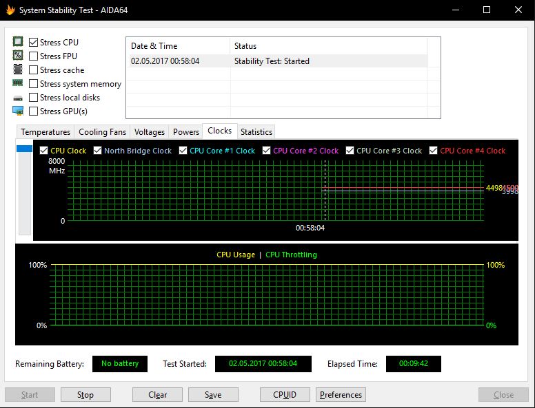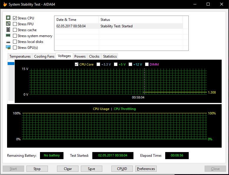 Попробовал погнать 6700к вот что получил в aida64 стресс тесте. Все вроде бы стабильно. Стоковый вольтаж стоял 1.3 мать Gygabyte z170 gaming k3, кулер Zalman CNPS10x Performa притом стоял сток вольтаж 1.3 а по факту показывало что то около 1.28. Поставил частоту в настройках материнки 4500, поднял вольтаж до 1.33 а по факту выдает вольтаж 1.308 это нормальное явление? Стресс тест работает стабильно, контроль напряжение поставил high. HT, TB оставил как есть т.е. включенными, пробовать брать 4600 и какое напряжение выставить (с учетом занижения или нет?)? Кулер затянет если учесть что 2 винта стоят? под нагрузкой занижается вольтаж на 0.12, может стоит отрубить turbo boost? Или же это (занижение вольтажа при нагрузке) нормальное явление? покатал в гта получилось работает довольно стабильно, иногда темпа подскакивает до 65-66 но потом сразу приходит в норму 60-64 градуса. Стоит оставить все как есть? Пробовать штурмовать 4600? Или снизить до 4400 при этом понизив вольтаж?