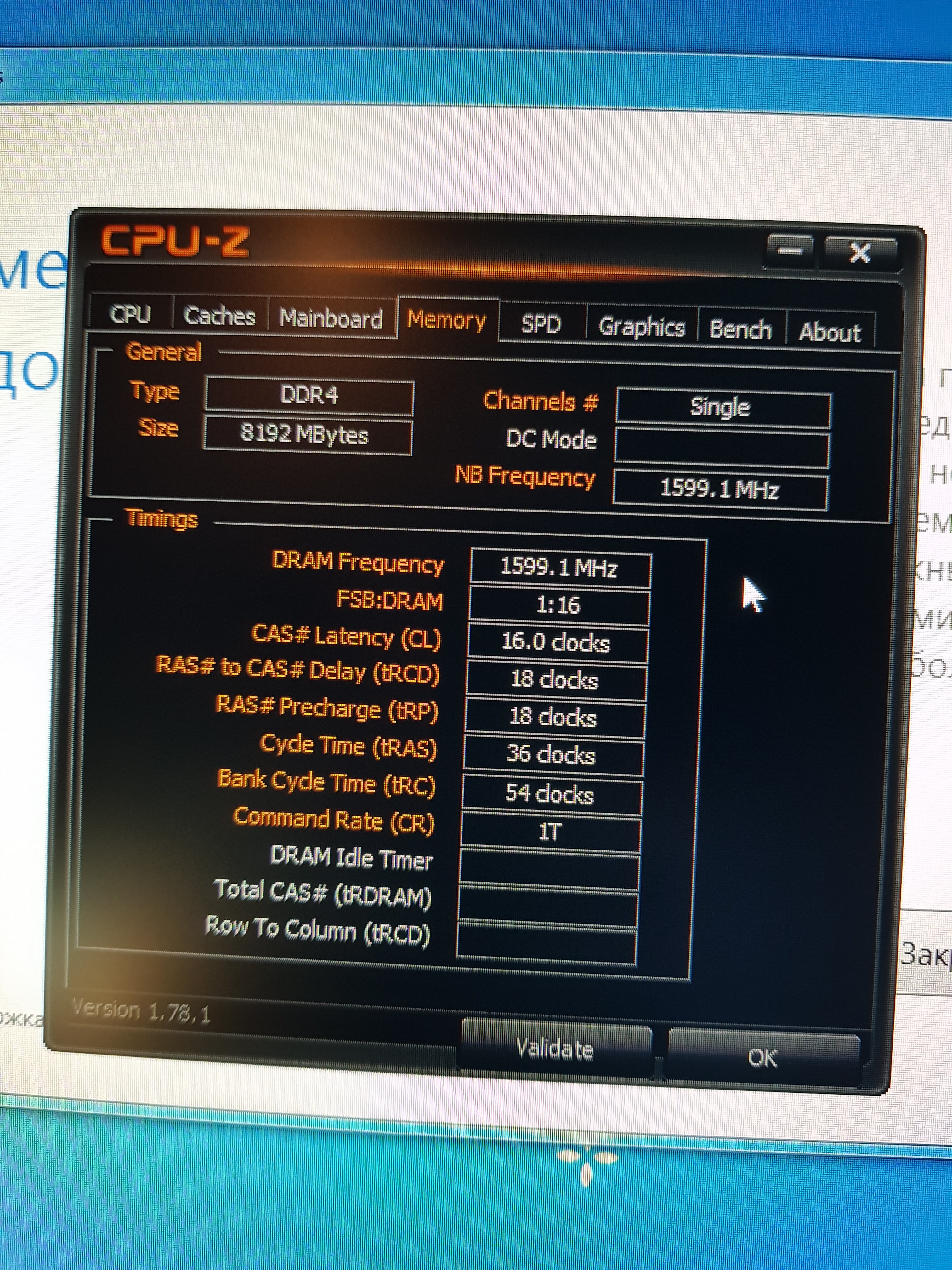 Нашел сайт http://www.modlabs.net/page/vsjo-o-programme-cpu-z#.Wc_271u0OUk изучил. Смущал показатель Frequency в 1600 на вкладке Memory(CPU-z), но оказалось что он как раз половинный Так же с "Timings Table", но как разобрался это всего информация о том в каких режимах может работать.