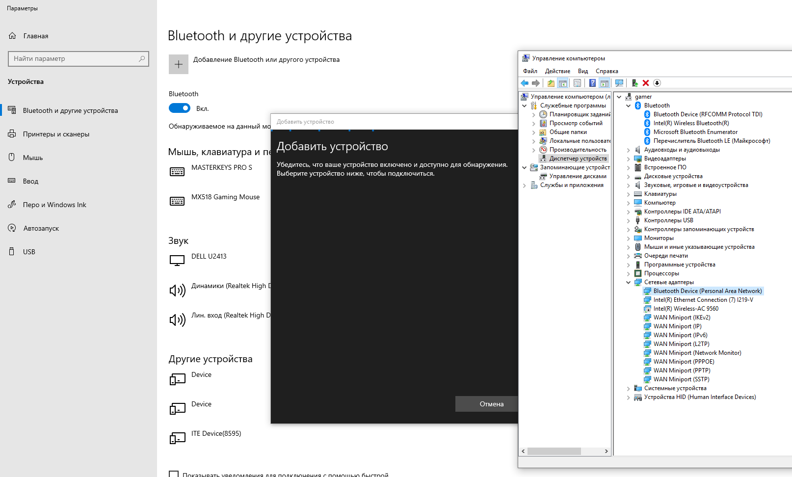 Дрова штатные. Что где стоит не понял. Винда устройства ищет до посинения.