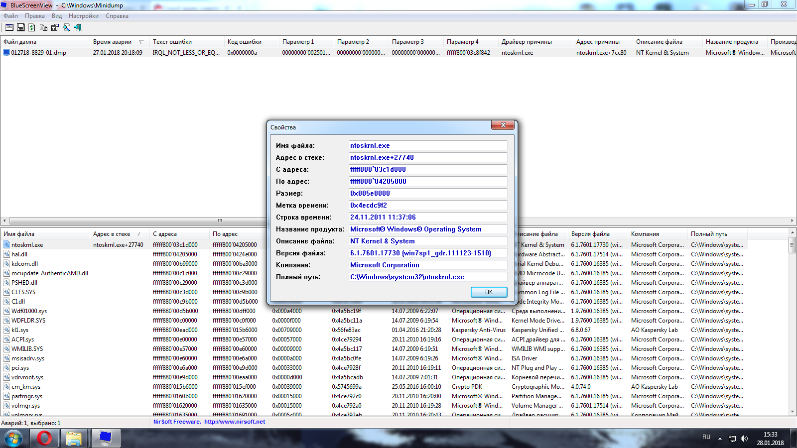 Куда смотреть? И почему в дампе нет ссылок на проблемный драйвер?