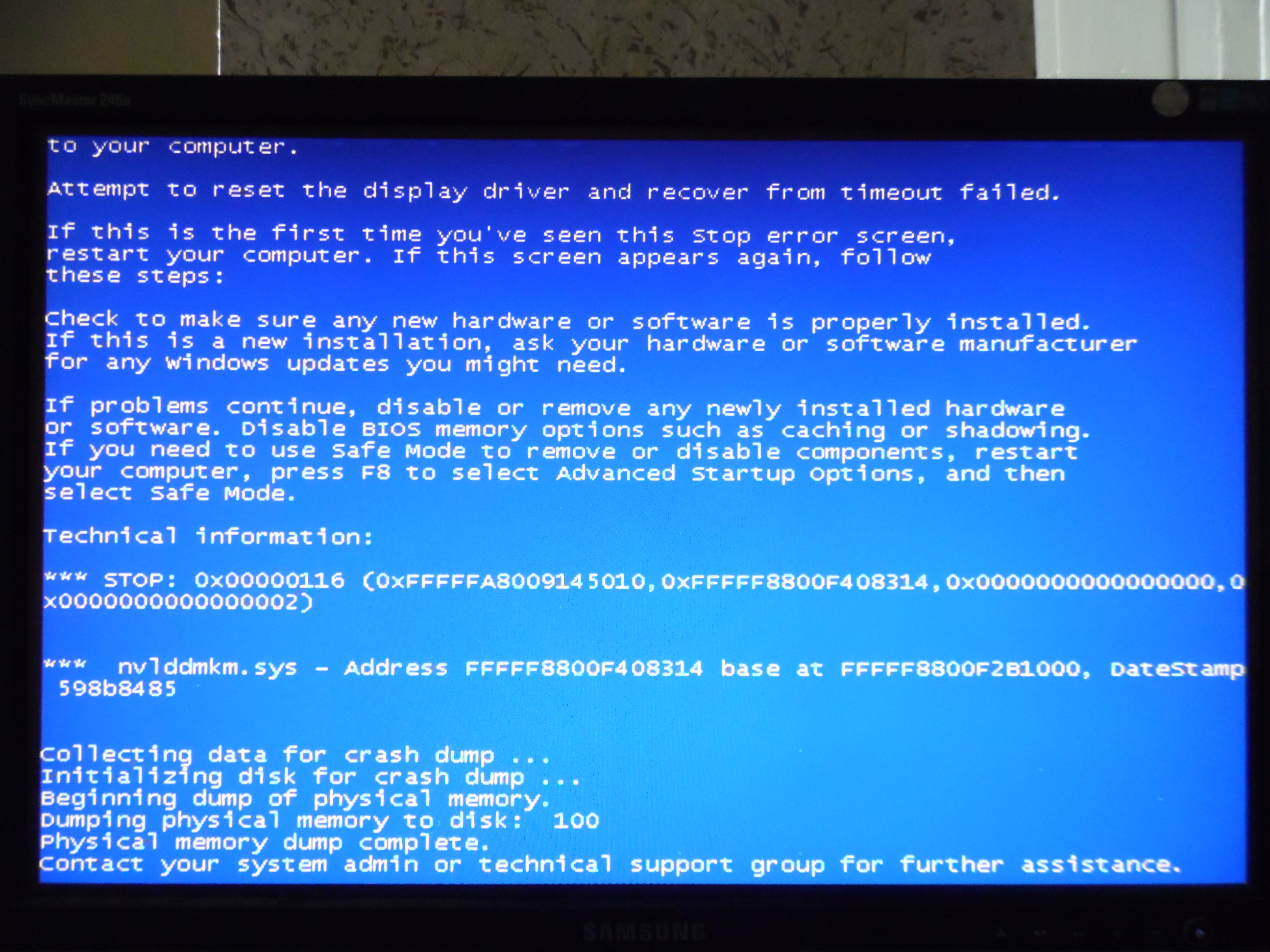 Привет всем! Прошу помощи! Не нашел ветку по чистому небо, напишу сюда. Вчера у меня произошла неприятность при установке лицензионной игры Stalker чистое небо. У меня стоит система windows 7 ultimate x64. Процессор intel core 2 duo e8400, видеокарта 1gb zotac gtx560 ti amp! 8 Гб оперативной памяти samsung original ddr3-1333 (все профильное). Я начал устанавливать игру, в конце установки вылезло окно с информацией о том, что возможно потребуется обновить directX, я не подумав нажал ок, игра установилась, но сразу после появления меню игры возник синий экран. Я успел увидеть версию игры - 1.5.08. Игру я запустил именно для того, чтобы узнать ее версию, чтобы знать какие патчи нужно будет ставить. В итоге виндовс перестала загружаться. После появления эмблемы виндовс вместо приветствия и рабочего стола появляется синий экран, система не загружается. Из безопасного режима я деинсталлировал игру. Потом я сделал восстановление к предыдущей точке сохранения, как раз перед тем, как происходили изменения с directX, система успешно восстановилась, но она так же не грузится, а появляется синий экран. Я из безопасного режима удалил драйвер видеокарты в диспетчере устройств, потом после перезагрузки снова в безопасном режиме в программах и компонентах удалил драйвера на видеокарту. После этого только система загрузилась в обычном режиме, но с встроенным виндосовским драйвером видеокарты и с низким разрешением экрана. После я почистил систему с помощью Ccleaner, в частности исправил все ошибки в реестре, где упоминалась nvidia. В итоге я не могу установить драйвер для видеокарты, происходит сбой. А если виндовс сама загружает и устанавливает видеодрайвер, то после этого система сразу ловит синий экран и снова потом не загружается. Что мне теперь делать? Можете помочь? Всему виной манипуляции игры с directX. Я сейчас из безопасного режима смог сюда зайти, не получается фотки с синим экраном на файлообменник закинуть. Можно ли как то сюда к сообщению их присоединить? Нашел вроде, как присоединить фотки. Хотелось бы понять в чем проблема - в винде или в видеокарте? Дополнено: когда сделал восстановление системы, то кажется кое-как она запустилась, правда не с первого раза. Поработала минут 5, за это время видеодрайвер 3 раза падал и восстанавливался, потом еще раз упал и появилась синька. Потом она постоянно стала появляться при загрузке винды - после появления эмблемы винды появляются какие то цветные полоски горизонтальные, потом черный экран и синька.