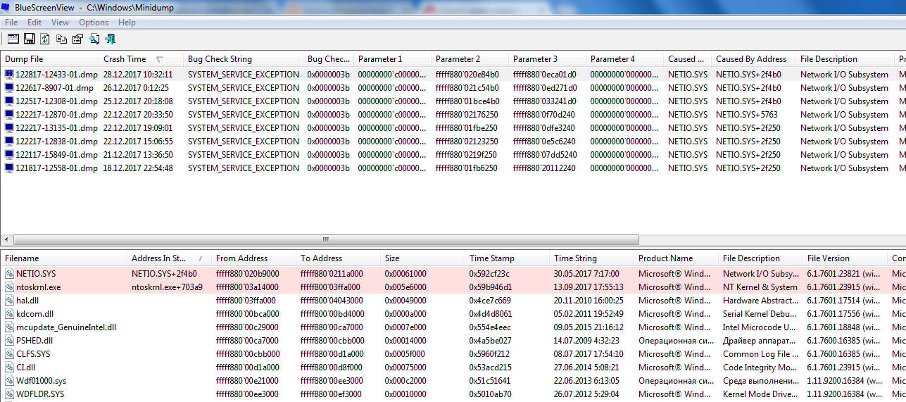 Второй параметр меняется, остальные неизменны. При просмотре дампа BlueScreenView выводит только код ошибки без ссылки на драйвер или файлы (скрин прилагаю). Делал полный дамп, теперь тестирую на малых дампах.