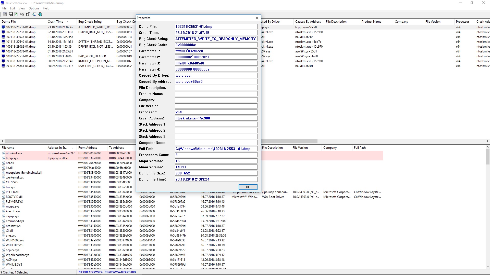 не могу понять в чем проблема. Рандомно выскакивают бсоды. Каждый раз разные ошибки, но проблемным файлом BlueScreen показывает именно ntoskrnl.exe Биос на матери последний, драйвера на чипсет последние, дрова на APU последние. Все в системе новое. Оперативная память по MemTest86 проверена дважды - без ошибок. Могу грешить только на жесткий диск, но по смарту он чистый. Еще проделал все операции как написано в теме Процессоры AMD Ryzen 1000-й серии (Summit Ridge\Zen\14nm\AM4\TR4) #15277291 . Не помогло. Мини дампы