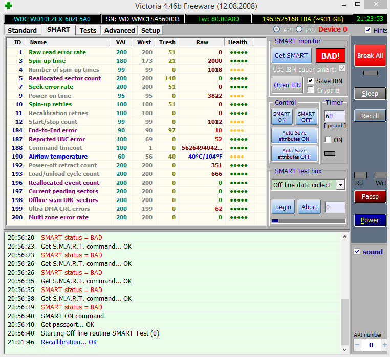 Но нужно всегда иметь ввиду, что смарт не всегда показывает реальное состояние HDD. Сама система контроля может поломаться. Поэтому оценить реальное состояние харда, можно только после тестирования.