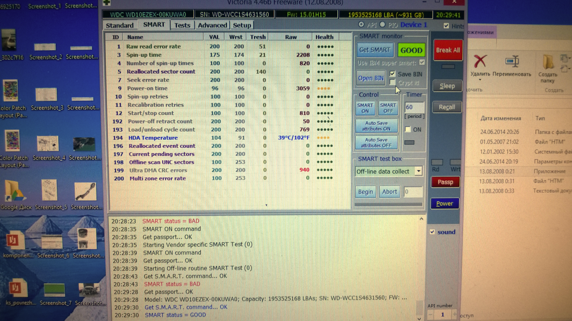 Главное у меня есть, такой же жесткий диск, за исключение страны производителя, одного времени покупки, и так вот с ним все ок. Думал что мб моя мать плата гонит, так вставлял свой жесткий в 2 других компьютера и у них тоже самое SMART bad.