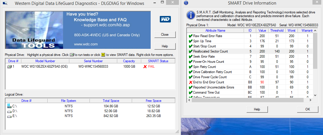 Здравствуйте, подскажите сколько диску жить осталось? Пытался поменять его по гарантии, в винде пишет смарт бед, и в биосе, пару раз камп зависал, в bf4 текстуры еле еле прогружались. В замене отказали, мол все хорошо с ним