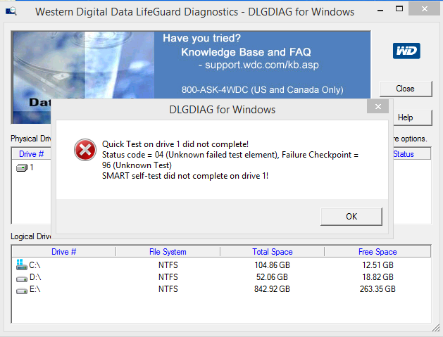 Проблема. 1й тест не запускаеться. 2й тест я так понимаю на битые сектора ( тестировать 1.5 часа) до этого тестировал в другой программе все сектора были ОК 3й тест не запускаеться.