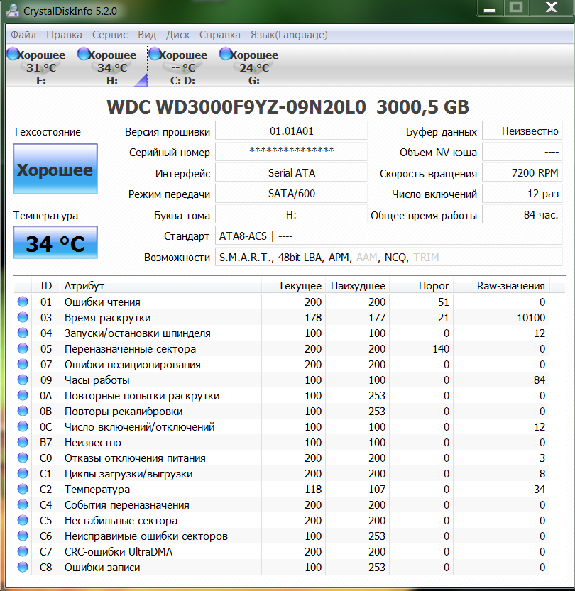 WD7500AACS – 3/6, с "DB6" - 3/5; WD7500AADS – 2/3;