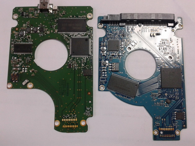 У винчестеров WD плата с электроникой перевёрнута. Такой прием, по мнению WD, позволяет решить сразу две задачи – защитить микросхемы от внешних воздействий и обеспечить их охлаждение. Поскольку микросхемы находятся под слоем текстолита, их невозможно случайно повредить острым предметом при распаковке и установке винчестера в корпус. Защищены они и от статического электричества. Между печатной платой и корпусом имеется слой термопроводящего материала, благодаря которому микросхемы могут отдавать тепло металлу.