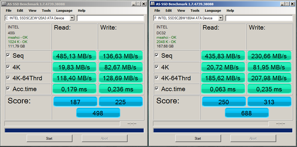 Определёный интерес могут представлять новые SSD второй половины 2015 года на TLC NAND (но брать их стоит в объёмах не меньше 240 Гбайт - http://www.overclockers.ru/lab/71280/ob ... .html): - SmartBuy Revival, OCZ Trion 100, Patriot Blast, Kingston UV300 (контроллер Phison PS3110-S10 + 19 нм TLC NAND); - ADATA Premier SP550 (Silicon Motion SM2256K + 16 нм TLC NAND) - медленней Phison PS3110-S10 + 19 нм TLC NAND; - Crucial BX200 (Silicon Motion SM2256 + 16 нм TLC NAND) - быстродействие ещё ниже, чем у ADATA Premier SP550. Нужно учитывать, что эти SSD не рассчитаны на активные операции (2-3-5 и т.д. Гбайт) с большими объёмами данных ибо значительная часть быстродействия обеспечивается небольшим SLC-кэшем - см. обзор, ссылка на который чуть выше.