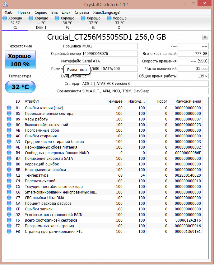 ЗЫ: И переключите CrystalDiskInfo в человеческий, 10-тичный режим Сервис - дополнительно - raw значения - 10 [DEC]