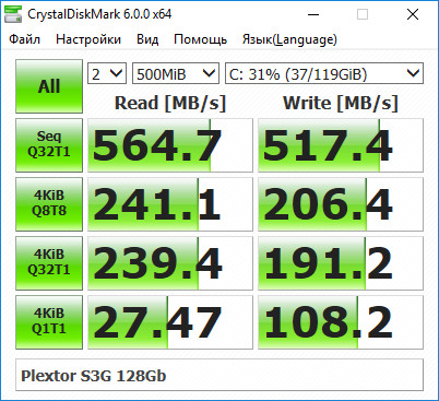 Был у меня S3G на 128 гб. Юзал полгода на Z370. В последнее время скорость записи стал выдавать 100мб иногда 160, 200. После ребута винды 480-500, потом опять падает. Грешил на 10 с ее мелдаунами, восстановил из бекапа 7 которая на нем же и стояла раньше и там тоже самое - 165мб на запись. Плюнул и поставил А1000 с 1500 на чтение и 900 на запись. А S3G поставил на мать с В360 чипсетом, вроде там нормальные скорости выдает. Хз толи несовместимость какая, толи плекстор фуфло толкает. Не понравился он мне, еще и температуру не кажет.