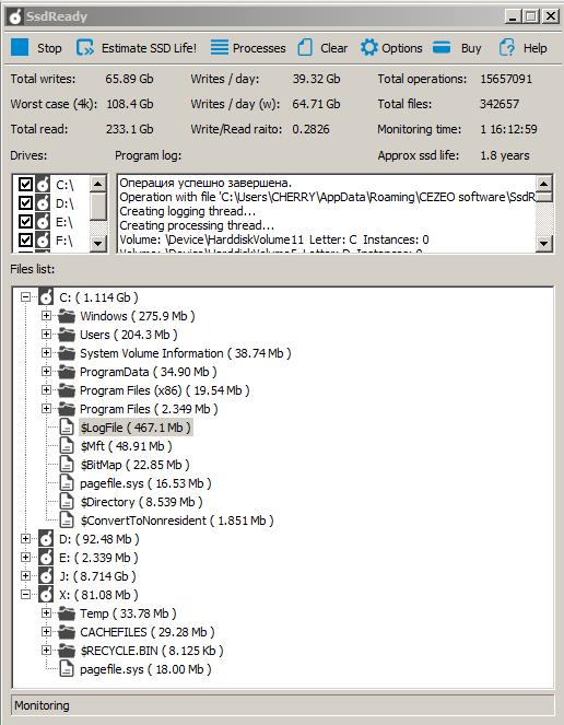 Установил SSD Ready и теперь сижу и переживаю, ух больно много винда пишет на диск С. За два часа - 1 гиг. Комп используется дома (интернет, фильмы, ТВ-тюнер и игры).