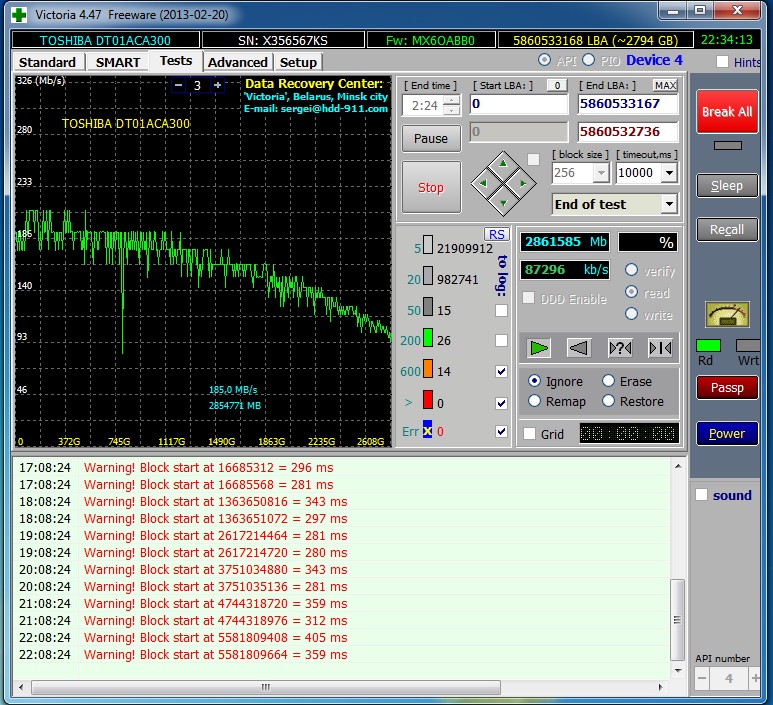 подвернулся 3 терабайтник TOSHIBA DT01ACA300 без гарантии но новый, как протестировать за сутки, другие - манибэк сейчас в аиде линейную запись делаю, там ещё есть лин. запись+верификация может лучше её ?