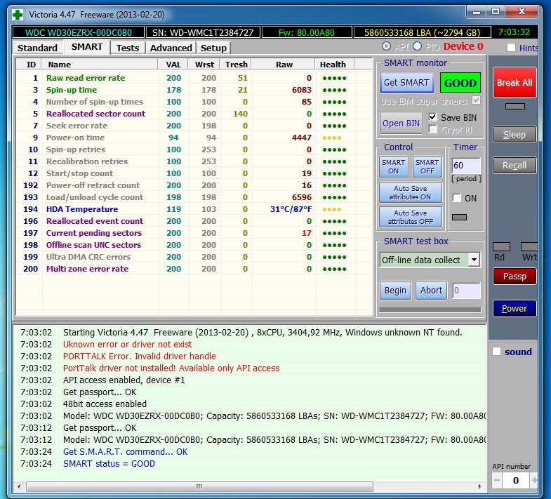 вот один из моих новых wd зелёной серии меня озадачил сначала виктория встречала его плохим прогнозом при 17 кандидатах в переназначеные после чтения с ремапом из под дос прогноз положительный но как было 17 персон так и осталось почему они не исчезли, если при сканировании в дос ни одной ошибки ?