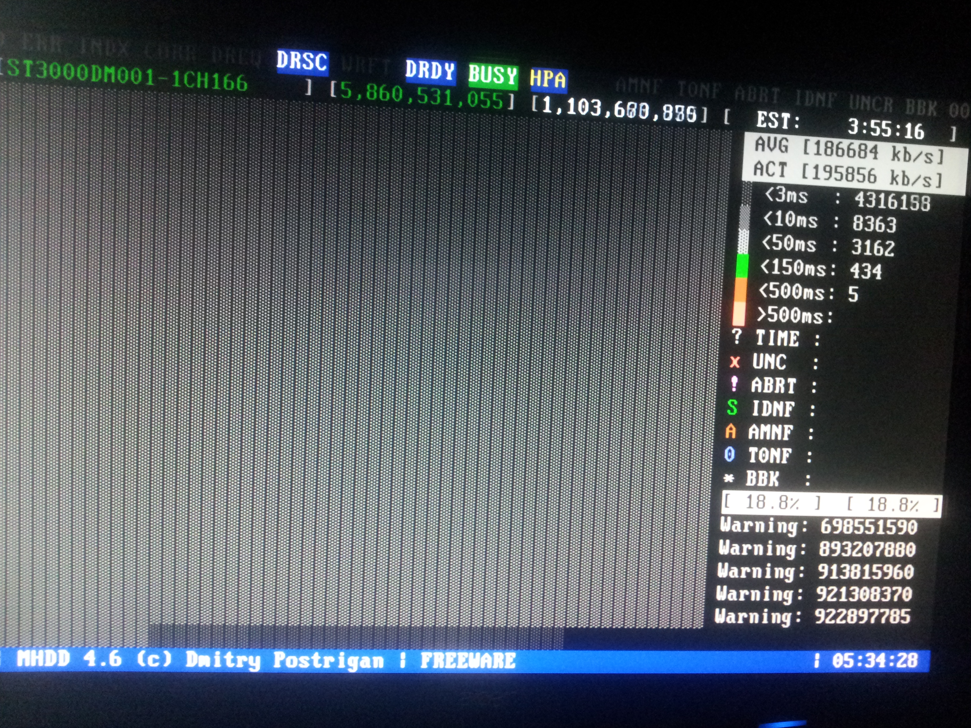 Развалился Raid из профильных трешек. Начал сканирование с ERASE в MHDD - сканирование зависает на 25% и начинается треск/стук и странное жужжание. MHDD смарт показывает, из под windows он становиться в 5 пунктов и диск невозможно отформатировать, хотя емкость вроде определяется в той же Intel RST. Я так понимаю, диск отжил свое?