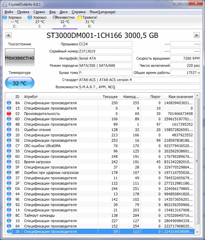 >>>При использовании Crystal Disk Info в меню Сервис>Дополнительно>Raw-значения выберите вариант "10 [DEC]" это несколько упростит восприятие информации утилиты форумчанами.<<<
