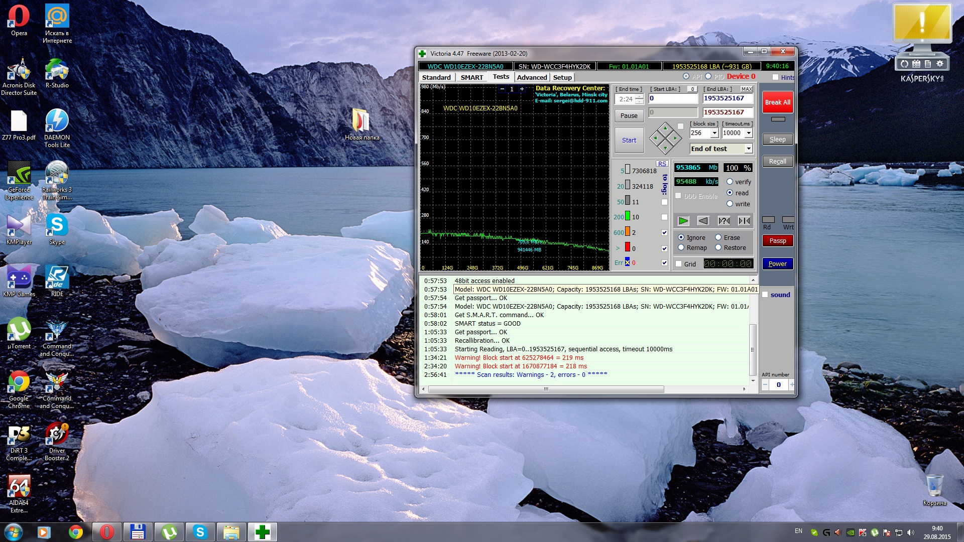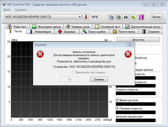 Про скорость не говорили но сказали про чтение и запись что само собой подразумевало скорость), по крайней мере для меня. Короче это уже не важно, спасибо за помощь. А викторию с загрузочной флешки запустить получилось, так что еще раз сегодня ночью поставлю, правда уже больше ради интереса чем для проверки) А MHDD так и не запустился какую-то там ошибку выдает(( Еще подскажите пожалуйста, можно ли в программе HDTune как то запустить тест на запись? У меня ошибку выдает при старте