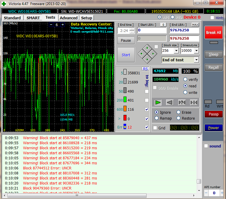 Здравствуйте! Недавно сделал проверку в Victoria 3,5 и нашел 24 дефектных сектора, advanced remap смог устранить только 12 если что делал все из под DOSa.