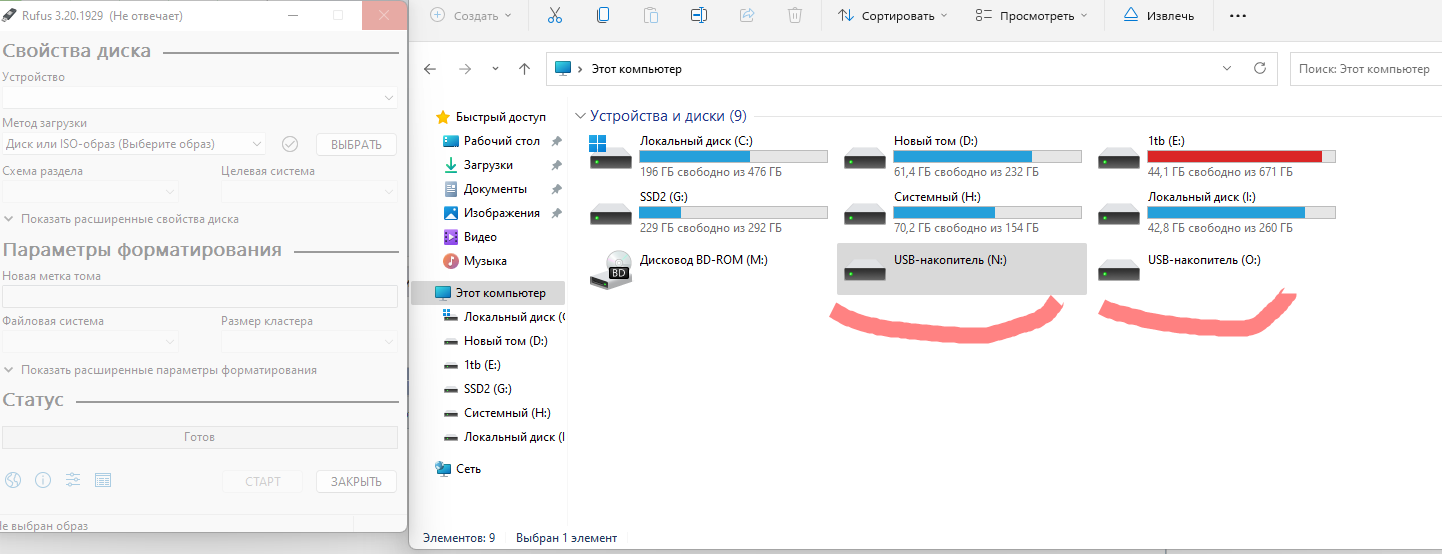 При создании загрузочной флешки произошло прерывание записи, пришлось вытащить флешку до окончания В итоге сейчас при подключении флешки проводник подвисает на неопределенное время Флешку же невозможно форматировать никакими средствами, и она разделена на 2 , в одной совсем мало ( около 900 кб) Вторая часть не показывает объем Через diskpart не возмоно ничего сделать, руфус тоже подвисает сразу при подключении флешки к компьбтеру МОжно ли как то восстановить ее или это финиш?