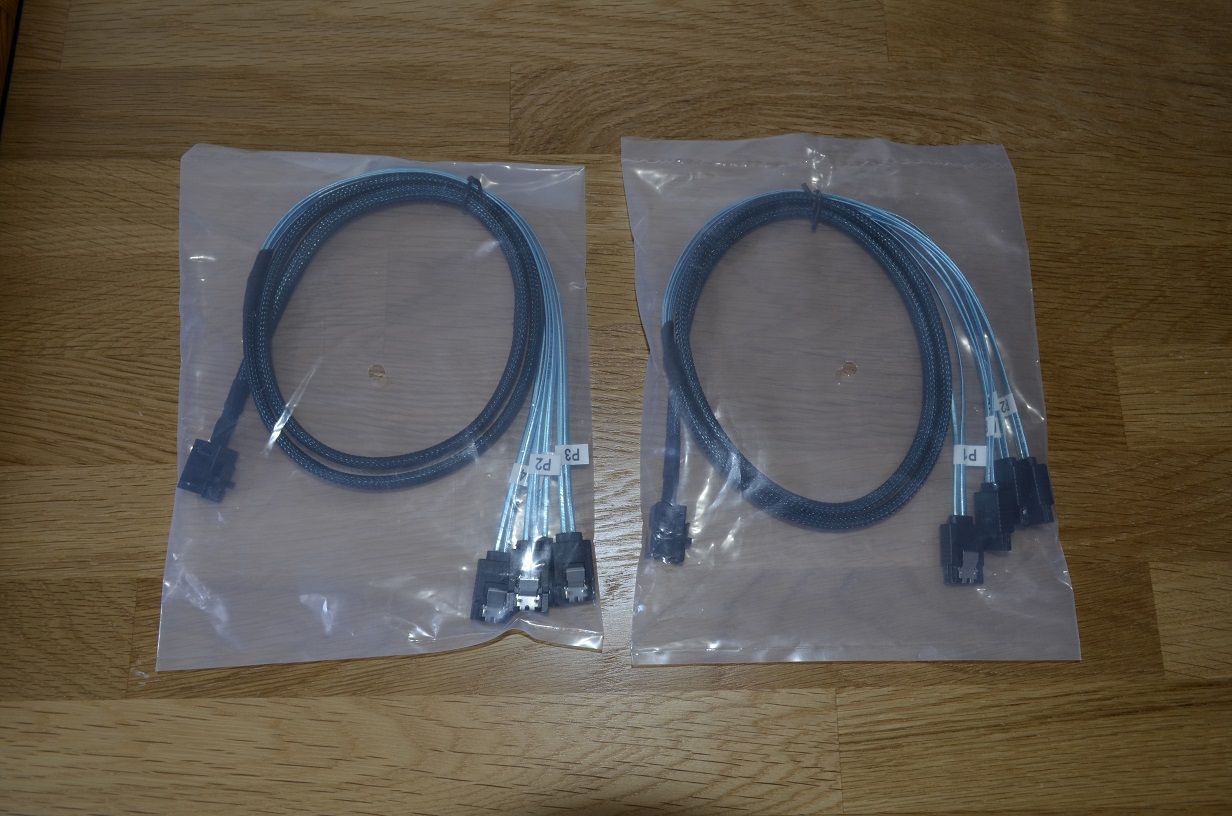 Кто то спрашивал про SAS to 4 SATA шнуры. Заказал с Ali на пробу sff-8643 to 4 sata . Стоили рублей ~600 за штуку. Ехали чуть больше недели. Качество отличное. Длина 1 метр.