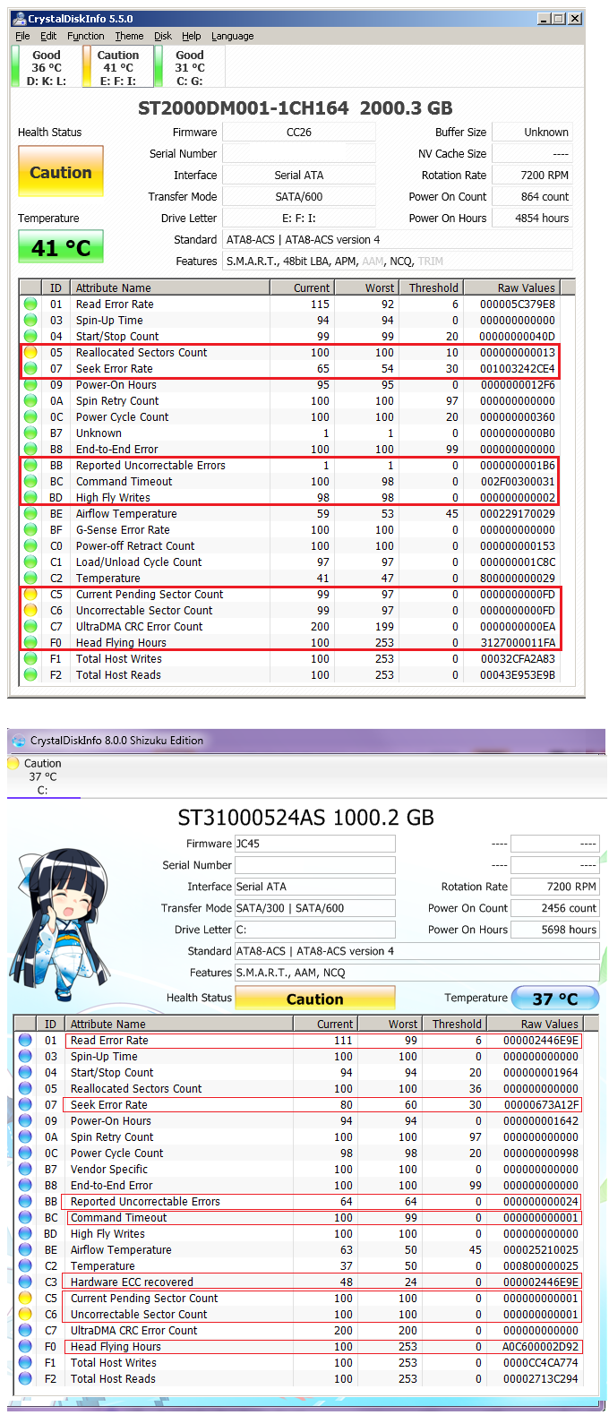 ST31000524AS и ST2000DM001 - типичные SMART с ошибками.