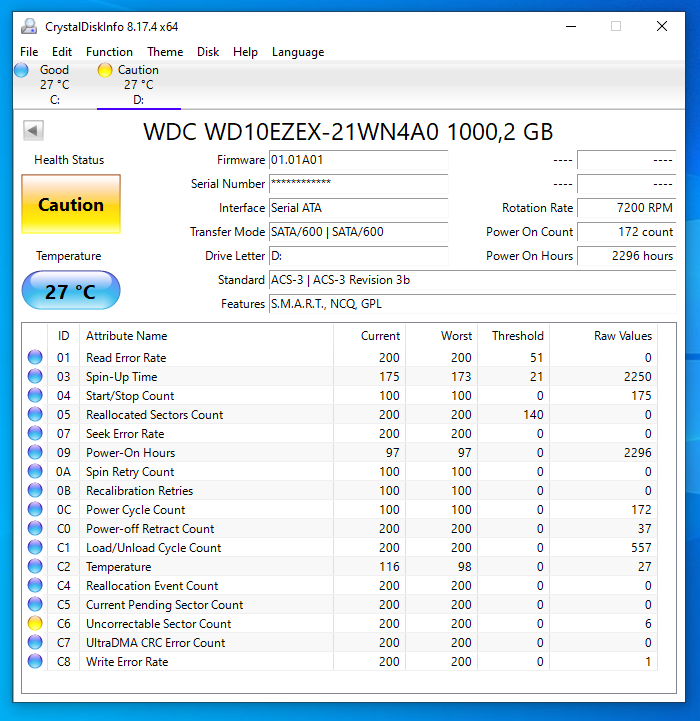 Sania. как то странно. я считал что от механических 05 и С5 в основном. да не суть, а исправить С6 никак? вроде Victoria HD может какие то ошибки в SMART исправить?
