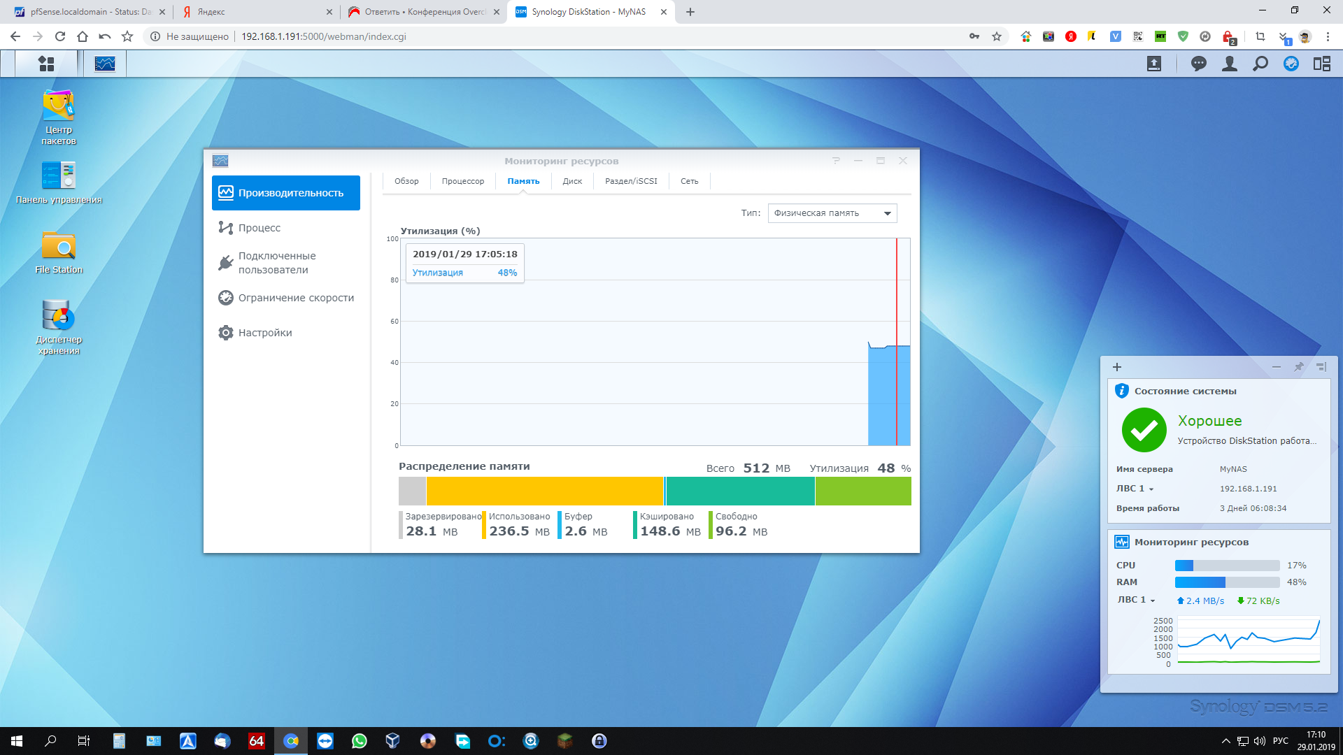 Скрины, сколько памяти использует Nas, и какие службы запущены