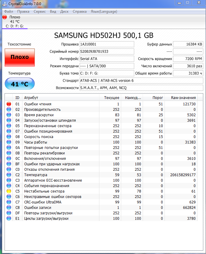 Здравствуйте есть пациент st1000dm003, проблема в том что система тупо виснет на пару секунд, реакций на мышку нету, просто полный зависон на парочку секунд. Решил посмотреть смарт диска и ужаснулся по первому пункту . Смутили ошибки чтения и ошибки позиционирования, я так понимаю то у винта проблема с головками ибо ошибок и переназначений секторов нету https://pp.vk.me/c637625/v637625247/2ddd/Ih6-WNvx9VM.jpg