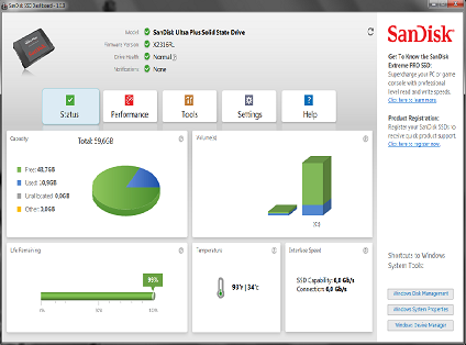 Обновилась фирменная утиль. Только лежит не в загрузках к дискам, а как-то с боку на странице и называется она теперь SanDisk Dashboard 1.0.3.0. О как! Кстати, это мой диск, пустёхенький.