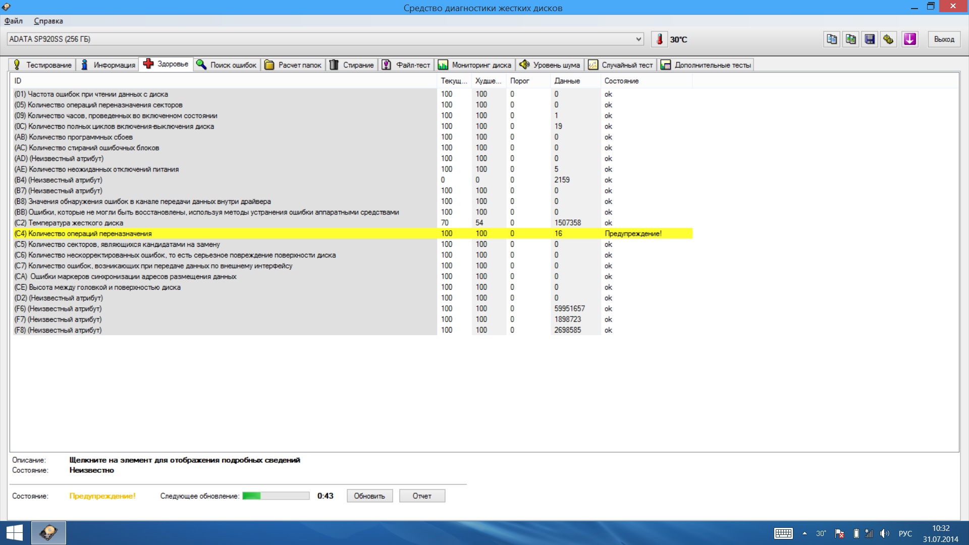 Всем привет. Несколько дней назад купил ADATA Premier Pro SP920 256GB. Скопировал на него систему.Всё окей. Сегодня глянул смарт и он показывает см. фото. Вопрос: Насколько это критично? Стоит его идти сдавать?