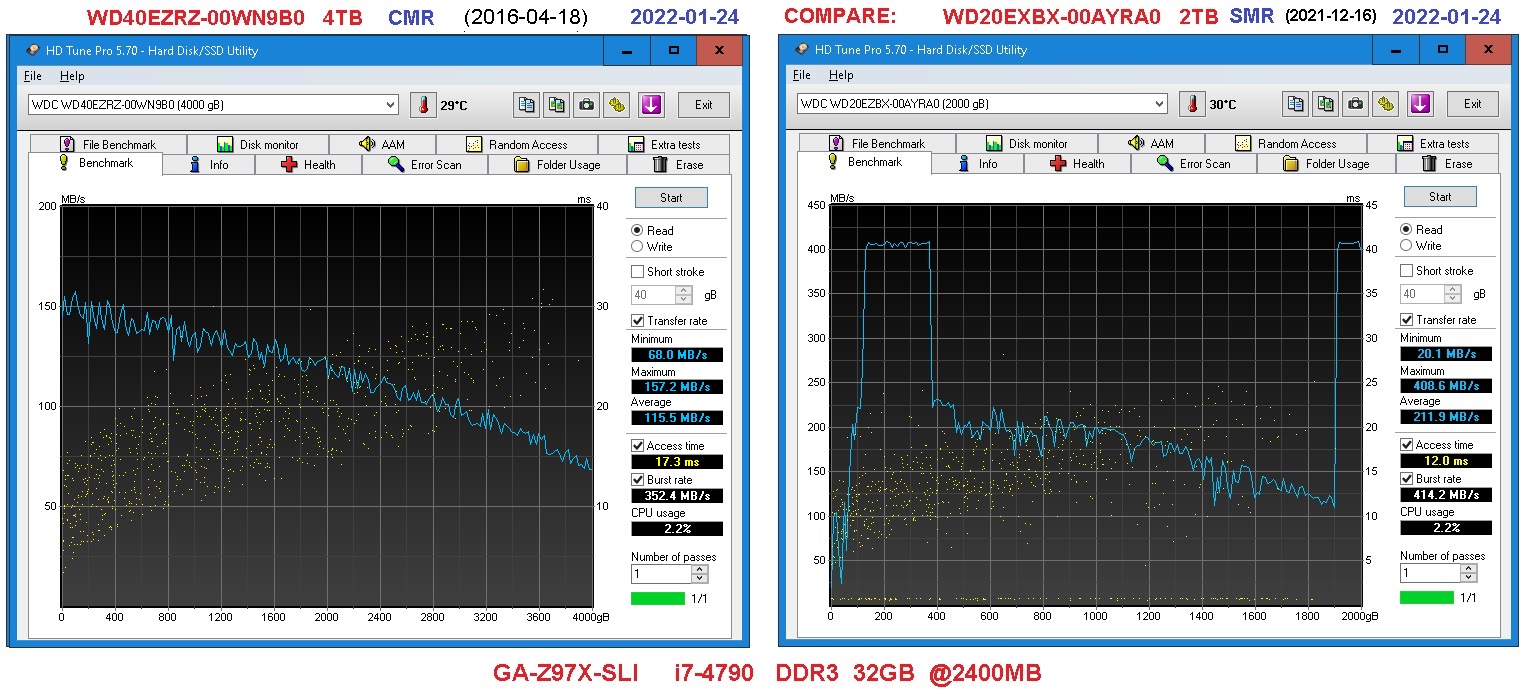 Глянул, - передо мной на столе среди вынутых запчастей лежит как раз WD40EZRX-00WN9B0 (Apr-2016). Ещё у меня в работе два WD40EZRX-00GX9B0 (Apr-2019 и Jun-2018). Никаких тормозов с ними не замечалось. Нормально работают. Ничего в заводских настройках не менял.