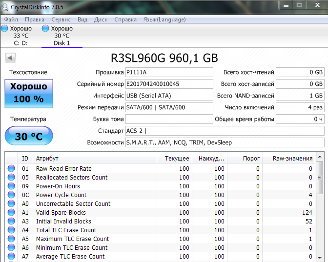 ========================================= Перед публикацией скриншотов Crystal Disk Info в меню "Сервис" >> "Дополнительно" >> "Raw-значения" выберите вариант "10 [DEC]". Это упростит восприятие информации. В меню "Сервис" ставьте галочку "Скрыть серийный номер".