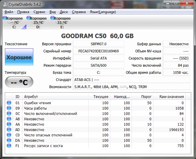 С оговоркой эксплуатации на штатном драйвере msahci (драйвер Intel [он же iaStorA, IRST] на контроллер SATA не ставить): - SmartBuy Ignition 2, GoodRAM C50/100, PQI S522, Corsair Force LS 240 Гбайт**, Patriot Blaze 240 Гбайт*** и прочие Phison-based (контроллер Phison; за полным списком лучше заглянуть в FAQ); Проблема заключается в падении скоростных характеристик на операциях записи. По отзывам, встречается при прошивке версии 7.7. Исправляется обновлением прошивки до версии 7.9 (после чего может потребоваться выполнение Secure Erase).