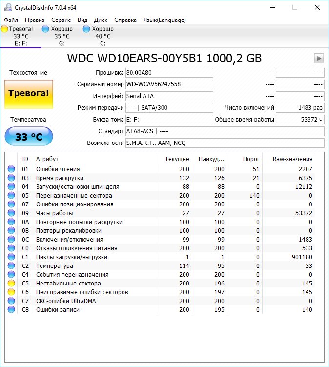 Забавно другое, смарт кристал диск инфо дает разный, то нормальный, то проблемный. ОС часто просит диск проверить на ошибки (после его снятия такого не происходит).