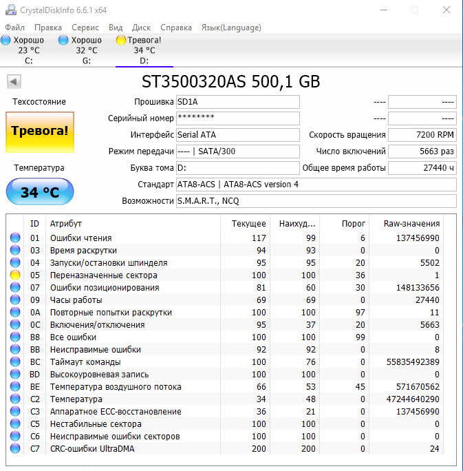 >>>При использовании Crystal Disk Info в меню Сервис>Дополнительно>Raw-значения выберите вариант "10 [DEC]" это несколько упростит восприятие информации утилиты форумчанами.<<<