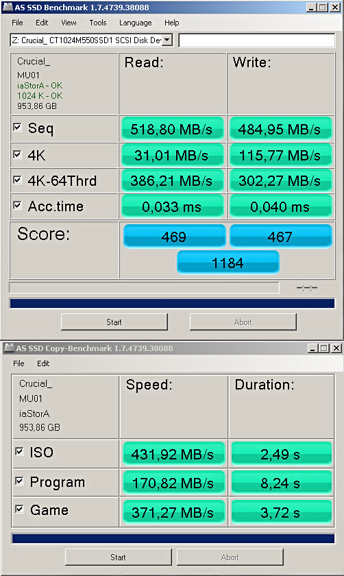 Определёный интерес могут представлять новые SSD второй половины 2015 года на TLC NAND (но брать их стоит в объёмах не меньше 240 Гбайт - http://www.overclockers.ru/lab/71280/ob ... .html): - SmartBuy Revival, OCZ Trion 100, Patriot Blast, Kingston UV300 (контроллер Phison PS3110-S10 + 19 нм TLC NAND); - ADATA Premier SP550 (Silicon Motion SM2256K + 16 нм TLC NAND) - медленней Phison PS3110-S10 + 19 нм TLC NAND; - Crucial BX200 (Silicon Motion SM2256 + 16 нм TLC NAND) - быстродействие ещё ниже, чем у ADATA Premier SP550. Нужно учитывать, что эти SSD не рассчитаны на активные операции (2-3-5 и т.д. Гбайт) с большими объёмами данных ибо значительная часть быстродействия обеспечивается небольшим SLC-кэшем - см. обзор, ссылка на который чуть выше.