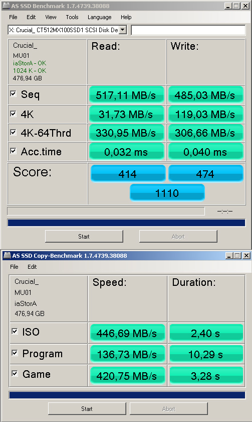 тесты mSATA Х110 128GB есть в местной лаборатории. думаю, результаты будут идентичны. с учетом неизвестной платформы, конечно.