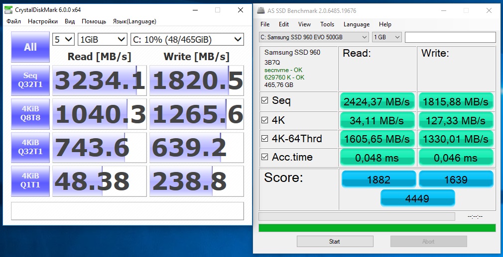 Добавлено спустя 3 минуты 8 секунд: Это без режима RAPID. Сейчас на системном 850 120Gb режим уже включён. 8 Gb оперативки для этого хватает.